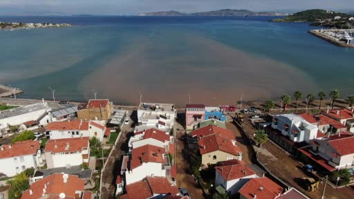 Foça’da sel suları denizin rengini değiştirdi