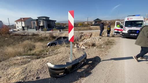 Yoldan çıkan otomobil asılı kaldı
